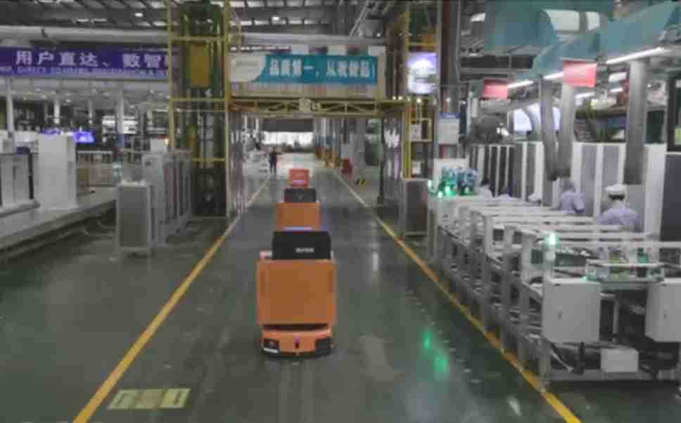 为车载冰箱物流配送打造的智能解决方案,,包含产中物流通过潜伏举升AMR搬运至线边,,产后成品物流智能仓储,,,流程包含产中物流智能齐套入库,,,,线边安灯叫料AMR智能配送至线边,,,成品入库、、、出库,,通过无人堆高车机器人,,,智能仓储管理替代人工作业管理,,,,实现更高存储、、、更高效率、、、更具柔性化的解决方案。。。。
